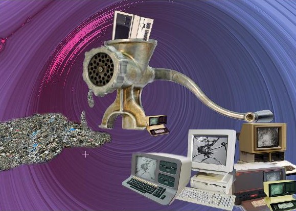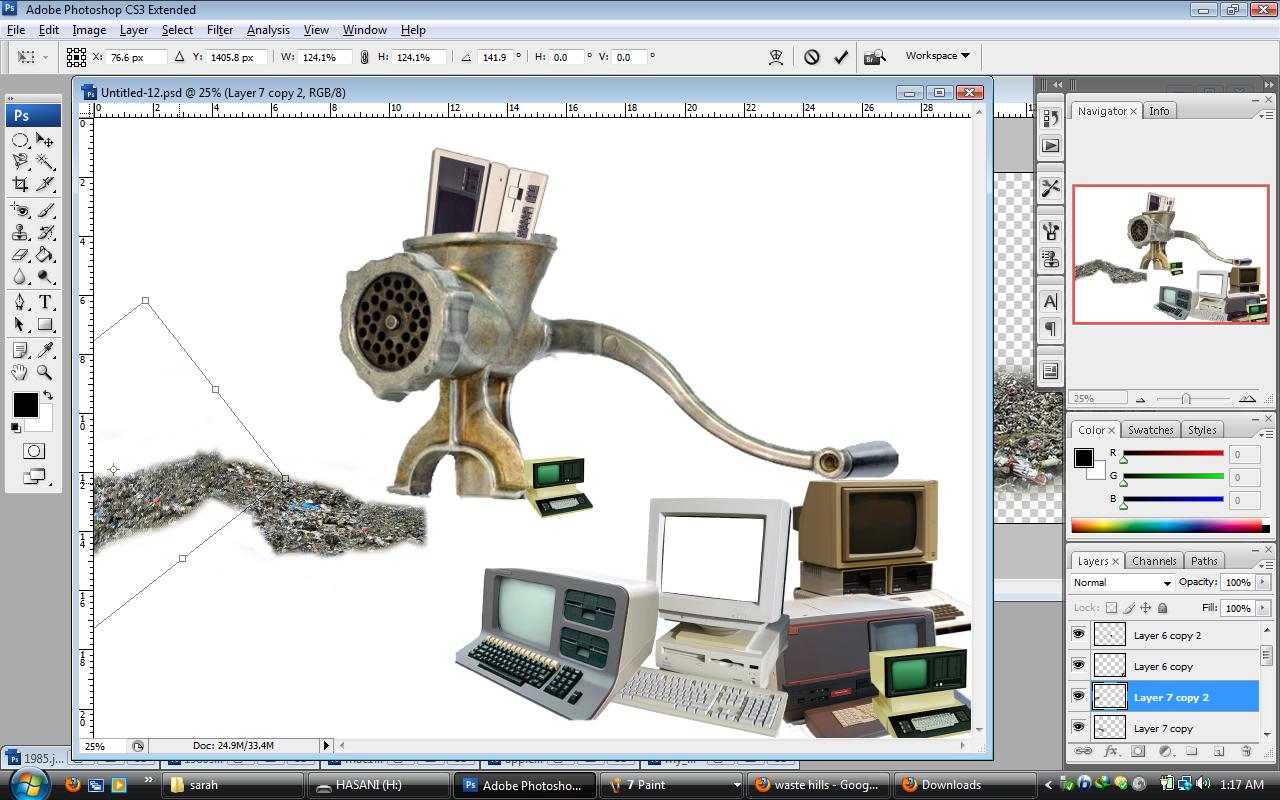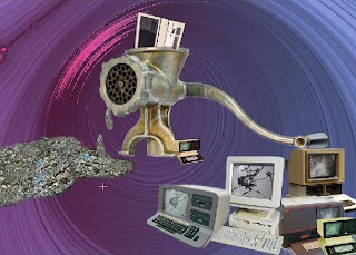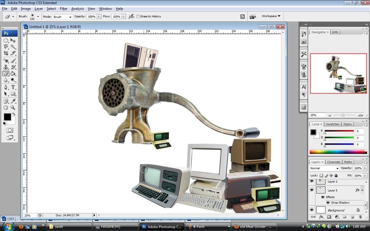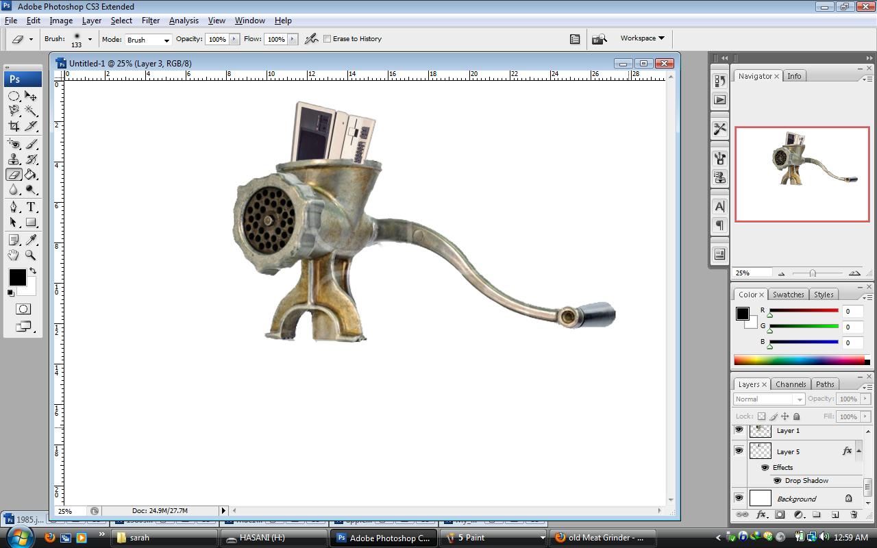 2. Now start to prepare the second poster which displays the computers between 1980 to 1990. for the first poster I used picture of a big hummer to show the computers of 1960 to 1980s had destroyed. but here I use picture of a meant grinder to show the old computers from 1980-1990s are not useful and they are also out of technology. thus, I choose all pictures from Google website and start to work on them by Photoshop.such as the first poster I pass the preparing process;