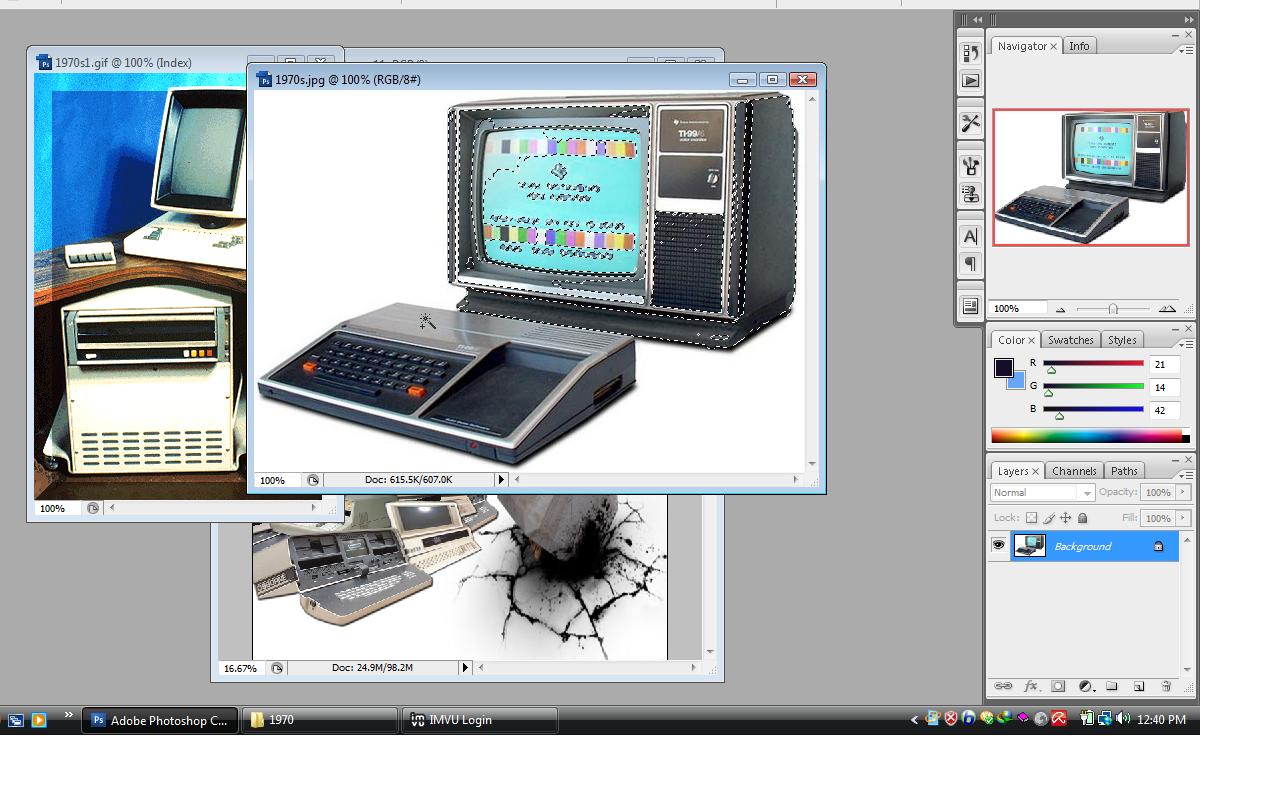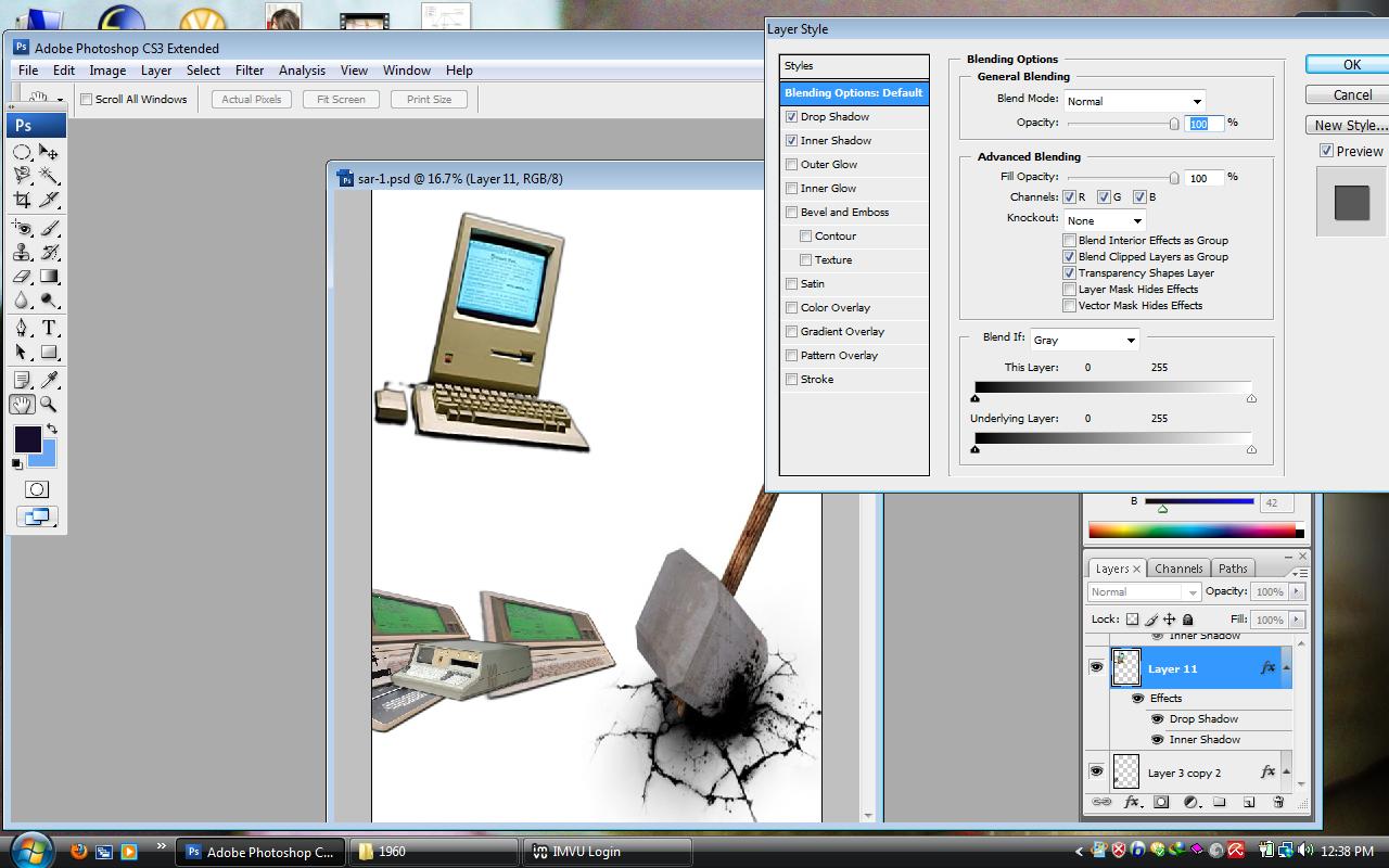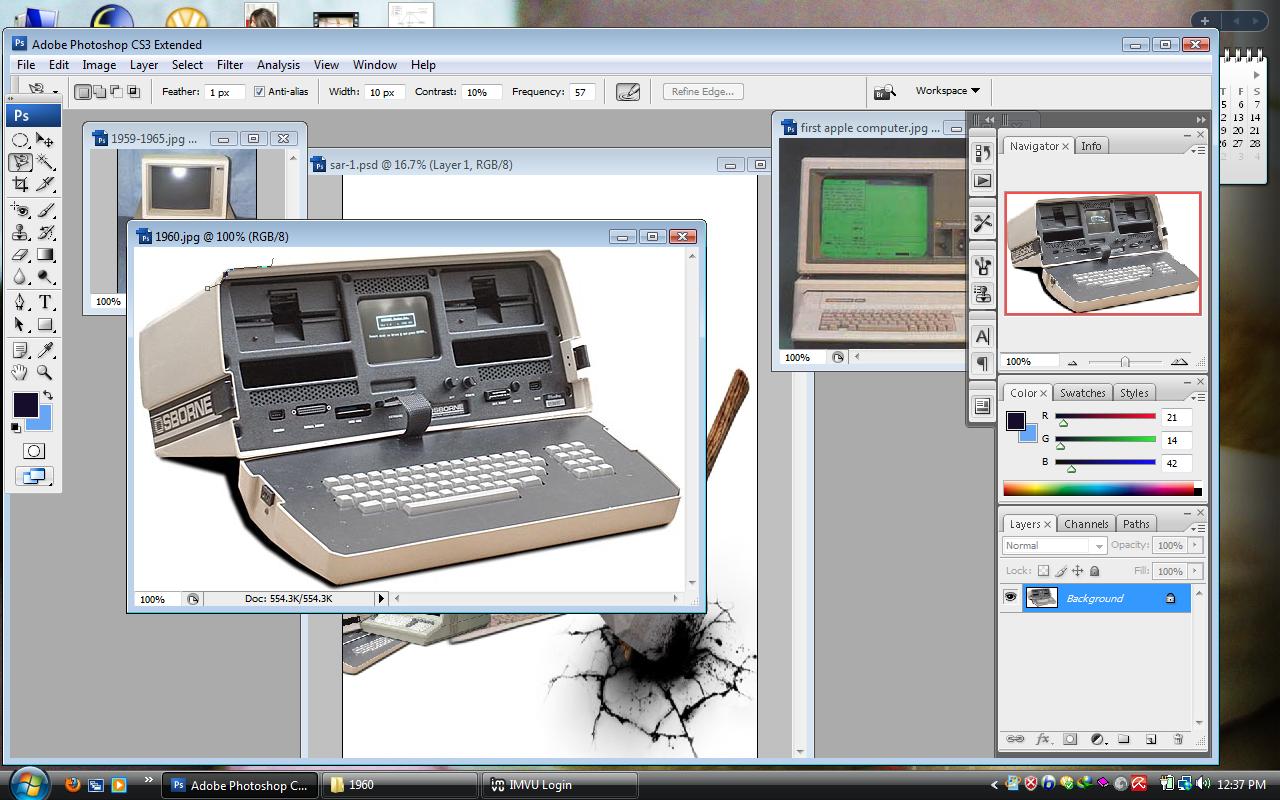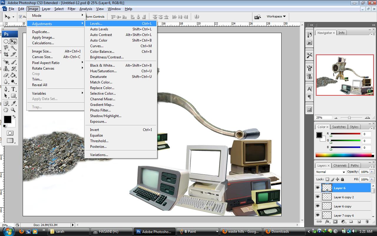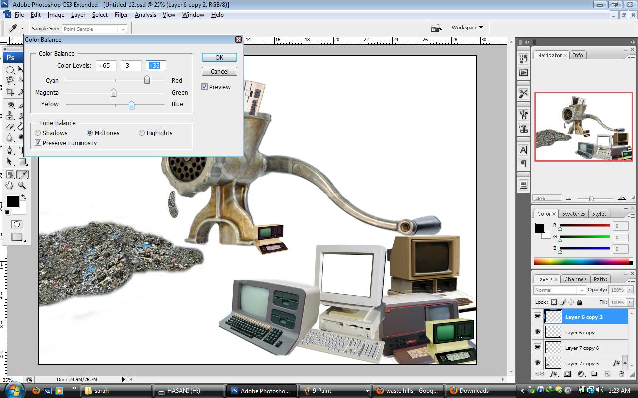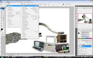 I would like to show the process of growing computers from 1960 to 1990 by using Adobe Photoshop CS5. I choose pictures from Google image as the background of my posters. In fact I want to show by improving human knowledge we need new technology. So the old technology must replace to the new technology. Thus I select a picture which shows a big hummer to indicate the old computers have destroyed. for first poster I show the computers from 1960 to 1970 and for second one I show the computers from 1980 to 1990. My friend (Sanaz) also wants to work on the computers from the other years. totally by these two posters I would like to indicate the old computers are not useful nowadays. because of this ideation I choose some pictures to show these kinds of computers had destroyed by a big hummer and by a meant grinder.